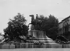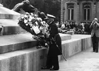 Från 11 juli 1944 vid avtäckningen av minnesstenen över professor Karl Ljungberg på årsdagen av dennes död. Amiral Otto Lybeck med professorskan Emma Ljungberg och fröken Inga Ljungberg.