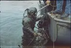 Bärgning av en av de tre bronskanoner som fanns kvar ombord på Vasa.