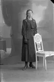 Enligt senare noteringar: "Ateljéfoto av en dam iklädd lång klänning, hatt och handskar."