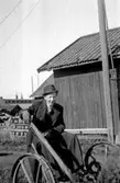 Bålerud. Självbindare 1936. Fr.v: Bertil J Gunborg (dotter) Karl J (far) Reprofotograf: Gunnar Berggren.