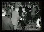 Svenska Turistföreningens 50-årsjubileum - kungligheter på väg in i Universitetsaulan, Uppsala 1935
