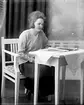 TRE KVINNOR OCH EN LITEN FLICKA I FINRUMMET, EN KVINNA VIRKAR.