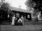 Julia Konstantia Bergman. Född 1860 i Öreryd. Var år 1900 änka med fyra barn och bodde i Rudet Nr 2. Kvinnan i vitt heter Julia Bergman, född Granath 1860-1931 Den andra Kvinnan heter Ebba Bergman 1897-1920. Mannen med vita mössan är P O J N Bergman 1886-1959. Den andra mannen är troligtvis Julia Bergmans pappa. Huset på bilden byggdes av Carl Bergman, född1838, död på Rudet 1900. Han brukade Rudet från 1882 -1900, Han var fanjunkare vid Wadsbo kompani vid Skarabotrgs regemente. Kompanichef var von Essen.