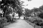 Kvarnholmen från vattentornet. Notera att det ännu inte finns någon bro mellan Ängö och varvet och att Ängö ännu bara har en träbro till Kvarnholmen.