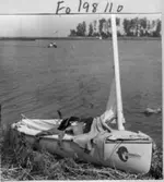 Kvinna ombord på färjan till Vinön, 1968
