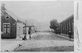 Handskrivet på originalets baksida: "Vy över Uddevalla mot norr. Vägen i förgrunden nuvarande Södra vägen. Gatan till vänster Södra Drottninggatan".