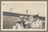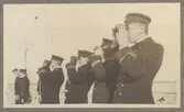 Bilden visar kammarherren i samtal med sjöofficerare under linjedopet på Fylgia