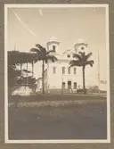 Manskapet på Fylgia drillas inför en grupp finklädda herrar i civila kläder och paraduniformer. Bredvid åskådarna står en filmkamera för att spela in händelsen. I bakgrunden syns hamnen, kustlinjen och staden Valparaiso.