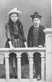 Bildtext till kopian i fotoalbumet: "I bakgrunden berget vid Hälleskäl, Islandsberg. Fr. vä: Emil f 1891, Tyra f 1900, Arnold f 1899, Julia f 1900, Martina Ödman f 1874 o framför Gustav f 1904".