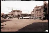 Vid hållplats på linje 1 ses Aktiebolaget Stockholms Spårvägar, SS B4 "jitterbugg" 934 på hållplats vid linje 1. En linje som gick mellan Norrmalmstorg och Rosenlund.
