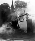 Brand på Ringgatan. Branden drabbade Skofabriken Almkvist och Johansson i mars 1962