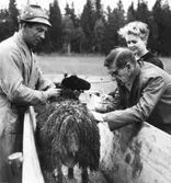 Fårklippning vid "Erik-Lars". Till vänster Gullan Lundgren