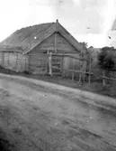 Exteriör. Miljö. Uthus/förrådsbyggnad intill trasigt staket. Fotografens anteckning: Dokumentation av fastigheter i kvarteren söder och norr om ån. Bilder och beskrivningar finns på Arboga museum.