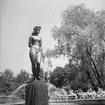 Skioptikonbild med motiv från Göteborgsutställningen 1923. Park utanför utställningshallen.