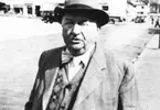 Brahegatan i Gränna, vid torget, norrut. En husrad till vänster med skyltning för bland annat "Bageri & Conditori" samt Eklöfs skor.