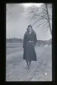 "Beata Olsson, Trosa." Porträtt av en kvinna, ståendes ute på en landsväg.