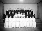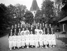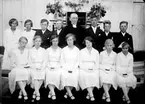 Konfirmation i Bellefors, Ekeskog. Kyrkoherde Evald Svensson 4. Vivi Johansson 5. Marianne Eklind 12. Harry Stålnacke 13. Bosse Pettersson 18. Harald Karlsson