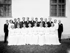 Konfirmander och anhöriga vid Härjevadskyrkan 1958. Domprost Karlström.