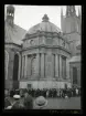568 F. Stieg Trenter, Torremolinos. Begravning. Människor har samlats kring kistan på kyrktrappen.