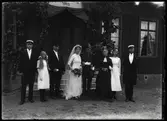 Grupporträtt - unga kvinnor och män utanför Sigtuna rådhus, Uppland 1901
