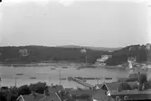 Tryckt text på kortet: "Från Bohusläns skärgård." "Uddevalla Pappershandel, Hildur Andersson." Noterat på kortet: "Byfjorden mot Sunningen med Brattö i bakgrunden. Taget från nuvarande Uddevalla Varvet."