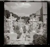 Skioptikonbild från Institutionen för fotografi vid Kungliga Tekniska Högskolan. Använd av professor Helmer Bäckström som föreläsningsmaterial. Bäckström var Sveriges första professor i fotografi vid Kungliga Tekniska Högskolan i Stockholm 1948-1958. Estetik. Begravningsplats.