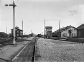 Statens Järnvägar, SJ Oa ellok med personvagnar inne på stationen.