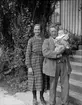 Enligt senare noteringar: "Anna Pettersson i Ed utanför Filip Karlssons hus, med barnen Gösta t.v. och Elsa t.h.".