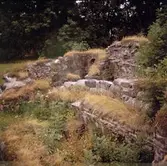 Husaby socken. Biskopsborgen före utgrävningen. Husaby biskopsborg uppfördes omkring 1400 av Brynolf Gerlaksson och förstördes kort tid efter reformationen. Det centrala tornhusets södra vägg kvarstår dock till full höjd. Borgen utgrävdes och konserverades under 1960-talet. http://www.ne.se/jsp/search/article.jsp?i_art_id=206431
