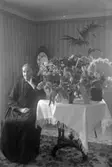 Enligt tidigare noteringar: "Fiskhandlare Karl Rasmusson i sitt hem, fotograferad med blommor och presenter vid högtidsdagen."