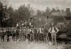 Edet. Fr.v: 1. 2. Fritiof Karlsson, Närlunda, lokförare 3. David Karlsson, Myrhult, eldare 4. Rickard Nilsson, Edet, förman 5. Gustaf Pettersson 6. Verner Karlsson, Tjärbruket 7. Frans Svensson ("Bussa-Frans") 8. Oskar Borg, Skagen