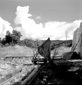 Smalspårigt motorlok med tippvagnar. Loket köptes via agent Gustaf Bauer, Stockholm och var tillverkat 1921 av Motorenfabrik Oberursel AG, Oberursel, Frankfurt am Main, Tyskland.