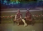 Kärnekull 30 juni 1966 En man i skägg och glasögon samt med ett glas med dryck och is i högra handen sitter på en vit parkbänk en solig sommardag. Han har en tidning i knät och håller i denna med vänsterhanden. Han är klädd i vit skjorta, randig mörk slips, mörk kavaj och ljusa byxor.
