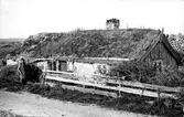 Borgatorp. En egendomlig byggnad med metertjocka murar. Ingen torde veta till vad ändamål huset ursprungligen uppförts. Överbyggnaden har tillkommit på senare tid. Mannen på bilden Johan Efraim Olofsson (1859-1932).