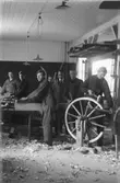 Interiör av snickeriverkstad, 12 personer. Alf. Andersson, Gropen, Kvistbro socken.