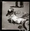 En lastbil har voltat i bäcken vid korsningen Våxnäsgatan-Romstadvägen 1941.