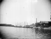 "Lysekil. Badhuset med Trampen och badgästbåtarne, taget utanför dambassinen 12/7 1899." enligt text som medföljde bilden.