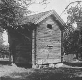 Stolpbod från Berga gård efter flytten till Vallby friluftsmuseum i Västerås.