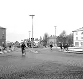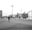 Kulvert i Mölndalsån utmed Göteborgsvägen, oktober 1993. Vy från Göteborgsvägen snett över E6/E20 mot sydost. I bakgrunden från vänster ses bl a Mölndals brandstation, Kvarnbyskolan, Hotel Mölndals Bro samt två kontorsbyggnader.
