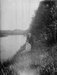 Enligt senare noteringar: "Munkedalsbon Henning Andreasson, fotograferad någonstans vid Kvistrumsälven. Andreasson var anställd vid MAB bl a som snickarförman. Han hade motorcykel som tjänstefordon då han övervakade arbetena." (BJ)