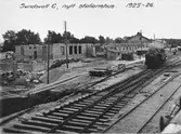 Ombyggnation av norra delen av centralstation , och byggnation av Klarabergsvidukten. Stadshusets torn i bildens bakgrund.