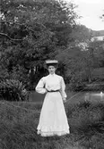 Kvinna som sitter i gräset, förmodligen på Torreby