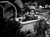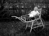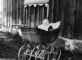 Två barn, en av dem i barnvagnen. Margit och Karl-Erik Lindskog