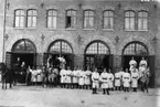 Linköpings fasta brandkår framför stadens dåvarande brandstation i den vad tiden kallat fröken Westrings gård invid Ågatan. I grunden fast brandkår hade staden haft sedan år 1891, då sex man anställdes mot en årlig lön av 100 kronor. Man hade tidigare stött sig mot en frivillig brandkår, som en tid avlösts av en värnpliktig, och som år 1881 landat i en organisation gemensam med polisen. Efter de svåra stadsbränderna i Sundsvall och Umeå 1888 krävde brandförsäkringsbolagen att brandberedskapen ytterligare måste skärpas i landets trästäder, och i Linköping skapades den ovan ständiga brandkår. Efter Maria Sofia Westrings död 1872 hade Linköpings stad erhållit gården som donation för bildande av ett så kallat arbetshus för stadens fattiga. Stadsfullmäktige kom vidare att döma ut gården såsom varande olämplig för ändamålet, och valde istället att låta en i sammanhanget skapad fond växa för en bättre lösning. Efter reparationsarbeten på gården kom den istället att från 1892 fungera som stadens brandstation, och var i funktion tills ny och mer ändamålsenlig station stod klar 1915. Upplysningsvis lät den nämnda fondens medel vänta på sig. Först 1928 beslutades att medel skulle utlösas som del i byggkassan för uppförandet av Hjälmsäters ålderdomshem.