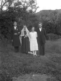 Två brudpar. Till vänster: Adolf Persson och Elin Larsson (flicknamn). Till höger: Olle Wernh och Rut Larsson ("Nygårds"), född 1902. Foto i början av 1920-talet.
