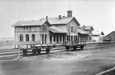 Kontaktledningsbrygga. Vagnarna är från vänster en gasvagn litt Statens Järnvägar, SJ Q4 och två fd Gm-vagnar som elförrådet Efd disponerar.