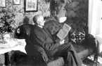 Ateljé. Tidningsläsande herre. Fotograf: Ellen Kock? Axel Lundbäck m.fl. Gullspångssamlingen. Bilder från Gullspång med omnejd.
