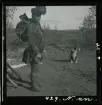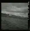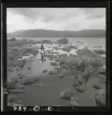 Tre män drar en eka över vattnet vid fjällgården i Kummavuopio, sommaren 1943.