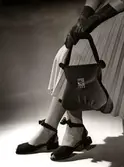 "Lädermarknad, Nordiska Kompaniet. Skor från Löfsko, väska från Miwa, handskar från Nordiska Handsk".