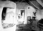 Skara. Kvarteret Kräftan. Brogården. Gammal köksspis i källarvåningen. Rummet till höger om södra ingången. Skall delvis ramponeras vid Nyår år 1928 för att bereda plats för värmeledning. (Exp. 1 timme med bländare 12.30 Kl. 13.30 - 14.30).